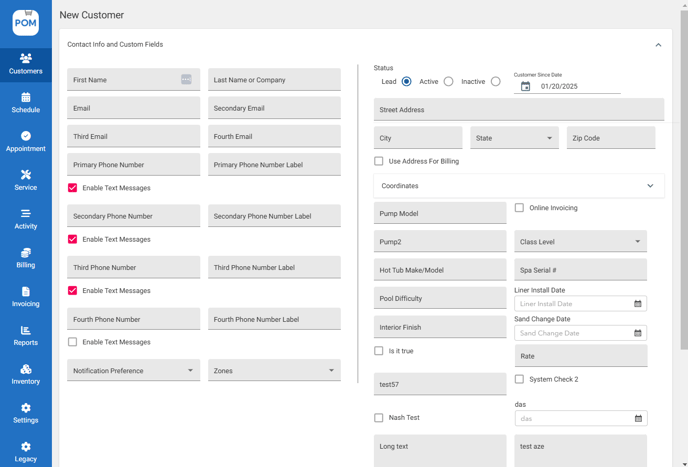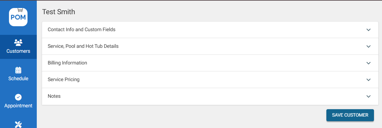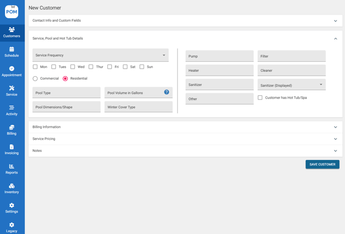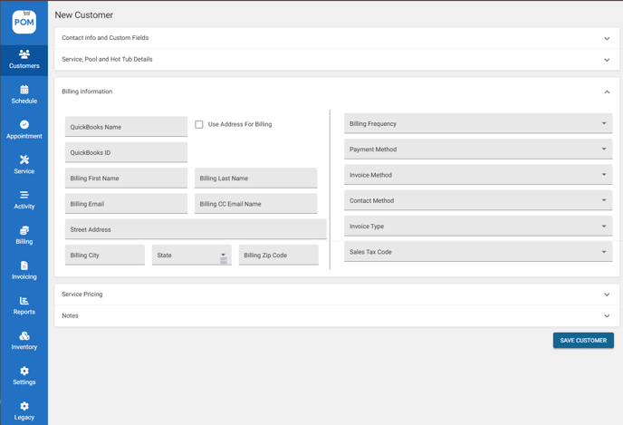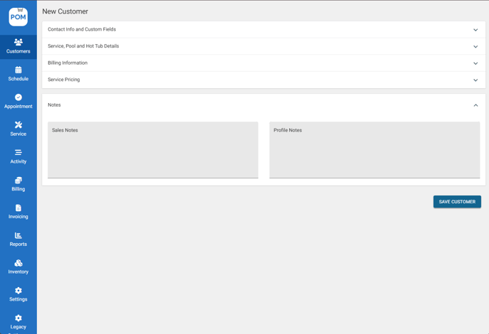 Profile Notes — Notes that will appear when you create an appointment and complete a service report. - Click "Save Customer" to save details.