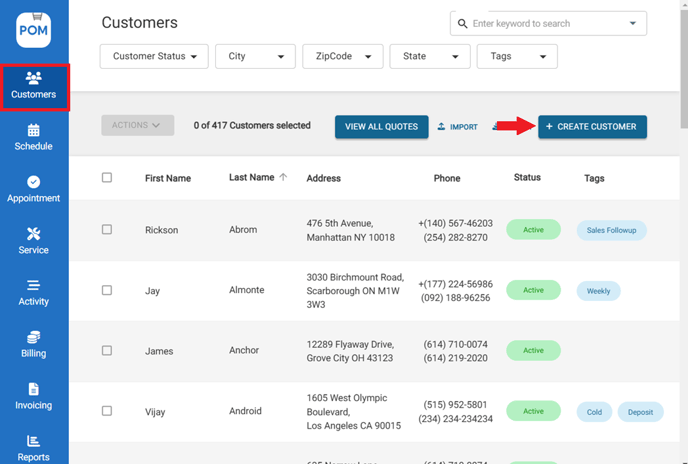 - Go to "Customers" > Click "Create Customer"