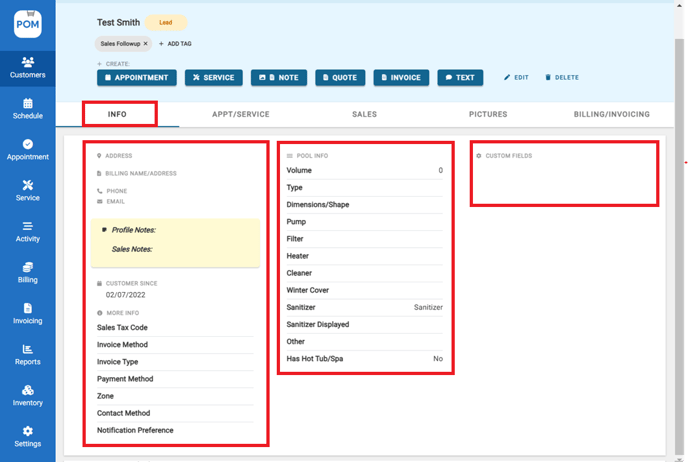 - Go to Customers profile > Click "Info"