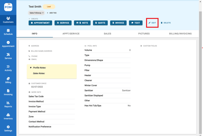 Click "Edit" to edit customer info.