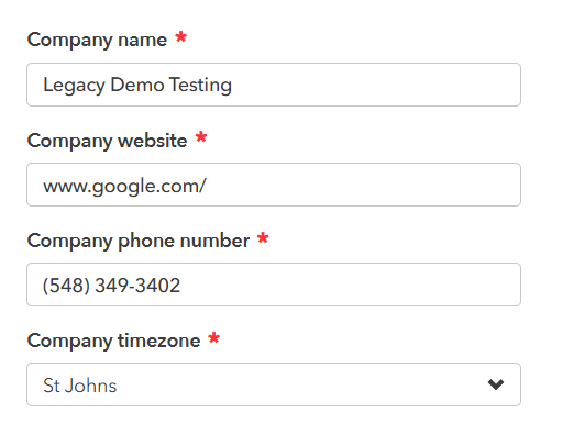 - Go to "Settings"> "Company Profile "> Add/Edit any information about the company, such as name, website, phone number, and timezone.