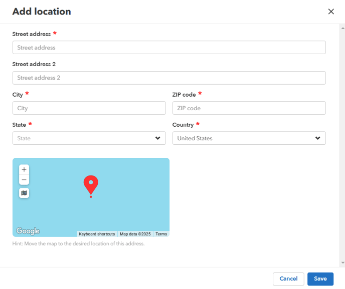 - Set your company's location.