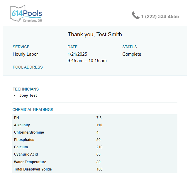 Email Example — Customer Service Report Once a service report is completed, the emailed version the customer receives looks like this: Pictures will also be included: