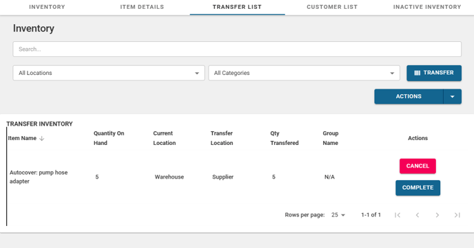 Provides control over each transfer, allowing you to CANCEL a pending transfer if needed or to COMPLETE a transfer once the physical movement of inventory has occurred