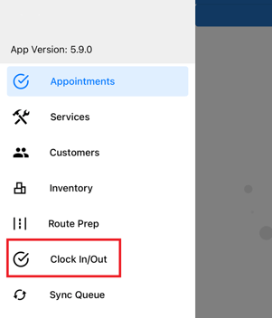 - On both desktop and mobile devices, go to the menu, select your username, and click on "Clock In/Out."