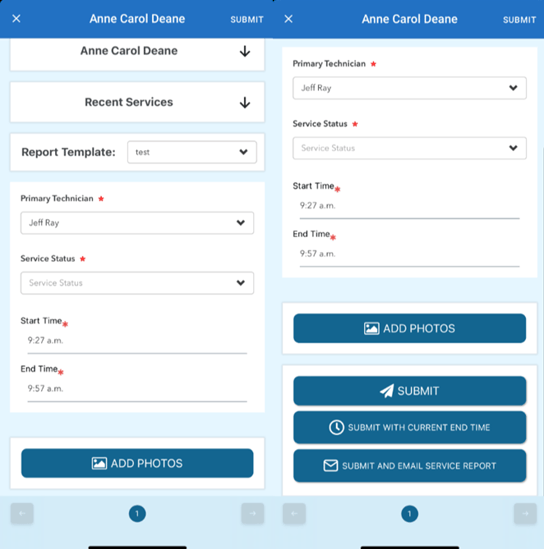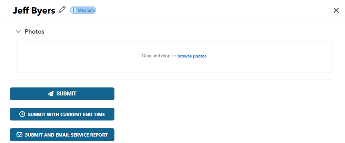 After filling out these fields, you can include maintenance details, attach relevant images, and then click "submit" to finalize and save the service visit.